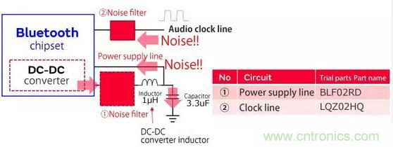 在這種情況下,我們引入了噪聲抑制的示例,其中同一電路中的噪聲干擾藍牙通信信號。該技術(shù)還可以應(yīng)用于以2.4 GHz頻率通信的非藍牙設(shè)備,我們已經(jīng)實現(xiàn)了噪聲抑制組件,這些組件在2.4 GHz的超小型x 0.4 mm x高頻范圍內(nèi)非常有效考慮到在添加組件時需要節(jié)省安裝表面積,需要0.2 mm。