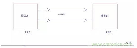 如下圖所示,如果兩個(gè)設(shè)備的零電位沒有很好的連接,即使設(shè)備A輸出的電壓信號是穩(wěn)定的,當(dāng)設(shè)備B的輸入端接收到時(shí)也會(huì)變?yōu)椴环€(wěn)定的。