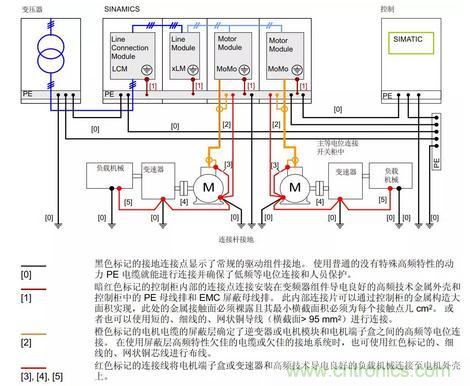 互相通信的設(shè)備也是一樣的,如果各自的零電位不一致,會(huì)導(dǎo)致信號幅值超差,不能正常通訊,具體表現(xiàn)為偶發(fā)通訊中斷和通訊端口損壞等故障,下圖為常見的電柜內(nèi)等電位接地示意圖。