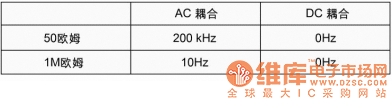 測試電源地噪聲可以使用頻譜分析儀和示波器,頻譜分析儀的輸入端口不能接入直流分量,因此在測試電源地噪聲時,必須在測試夾具中串連dc-blocking。頻譜分析儀的輸入阻抗為50歐姆,電源地網(wǎng)絡的阻抗一般為毫歐姆級,所以,測試夾具不會對待測系統(tǒng)產(chǎn)生影響。示波器的輸入阻抗隨設置的不同而改變,以泰克公司的tds784為例,其低頻截至頻率隨耦合方式和系統(tǒng)阻抗變化而變化,如表2所示。