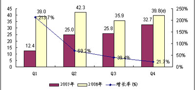 - 2008年仍保持了平穩(wěn)快速增長,前三季度市場銷售量達到117.2萬臺,同比增長率為85.5%