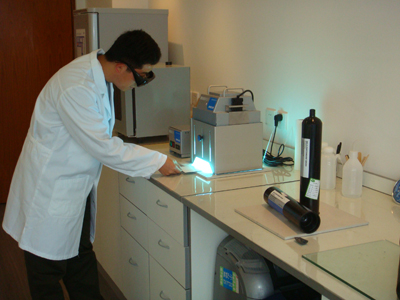 德路上海代表處首席代表 Torsten Uske說到:“我們利用自己的實(shí)驗(yàn)室和各類設(shè)備能夠?qū)Υ蟛糠挚蛻魳悠分苯舆M(jìn)行現(xiàn)場(chǎng)測(cè)試,這樣就不必把樣品發(fā)往德國(guó)。” Torsten Uske和他的團(tuán)隊(duì)將在實(shí)驗(yàn)室對(duì)客戶的應(yīng)用進(jìn)行諸如可行性研究。除了在揚(yáng)聲器和手機(jī)領(lǐng)域的粘接外,和顯示器相關(guān)的粘接實(shí)驗(yàn)也將在此進(jìn)行。我們實(shí)驗(yàn)室配備有各類設(shè)備,包括溫度測(cè)量?jī)x、光強(qiáng)測(cè)量?jī)x、固化燈、點(diǎn)膠設(shè)備以及涂膠用的絲網(wǎng)印刷模版。