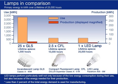 歐司朗針對(duì)LED 燈實(shí)施的生命周期評(píng)估 (LCA) 研究顯示,最新一代LED 燈在環(huán)保方面表現(xiàn)出色,獲得了極高的評(píng)分。此項(xiàng)研究深入細(xì)致地分析了LED 燈的整個(gè)生命周期,即在 LED 燈在生產(chǎn)、使用和廢棄方面所消耗的能源和原材料以及在這一過程中對(duì)環(huán)境造成的影響。研究結(jié)果表明,當(dāng)今的LED 燈已達(dá)到緊湊型熒光燈的LCA 分值,并且遠(yuǎn)遠(yuǎn)優(yōu)于傳統(tǒng)的白熾燈。