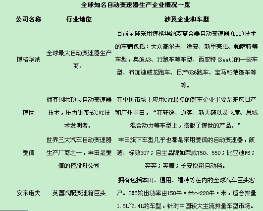 - 中國市場對自動變速器研發(fā)生產(chǎn)的渴求早就引來了諸多國際自動變速器企業(yè)