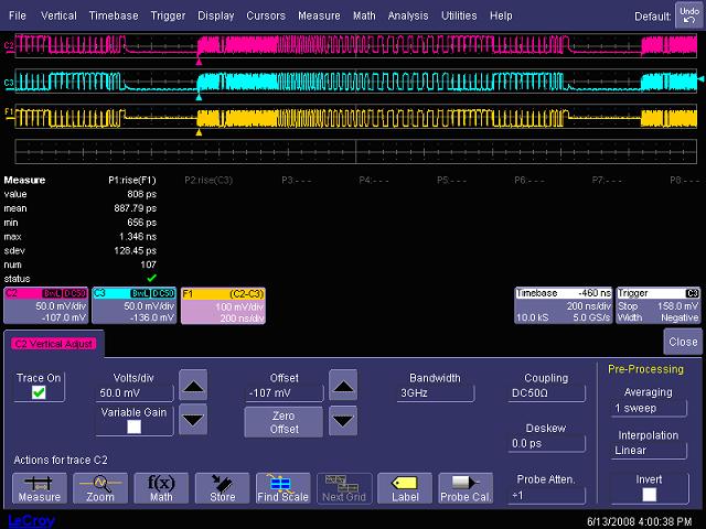 圖16,1GHz帶寬時(shí)測(cè)試USB2.0 high speed信號(hào)的上升時(shí)間
