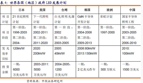 LED照明生產(chǎn)的效益顯而易見,世界各國都在政府的大力資助下加快推進(jìn)LED照明取代傳統(tǒng)照明的步伐,日本、美國、歐盟、韓國、中國臺灣和中國政府都制定了相應(yīng)的發(fā)展計(jì)劃。