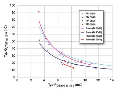 FOM=RDS(ON)×QgRDS(ON)直接與傳導(dǎo)損耗有關(guān),而Qg直接與開(kāi)關(guān)損耗有關(guān)。FOM越小,性能越好。圖3顯示了低電壓MOSFET工藝發(fā)展中FOM的進(jìn)步。對(duì)于2004年實(shí)施的PowerTrench3而言,最好的FOM是240,而今天的PowerTrench5硅工藝中最好的FOM是126。