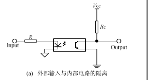 這種隔離方法是用光電耦合器把輸入信號(hào)與內(nèi)部電路隔離開(kāi)來(lái),或者是把內(nèi)部輸出信號(hào)與外部電路隔離開(kāi)來(lái),如圖4(a)、(b)所示。