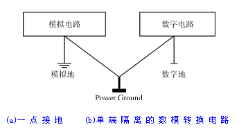 一般地說(shuō),模擬電路與數(shù)字電路之間的轉(zhuǎn)換通過(guò)模數(shù)轉(zhuǎn)換器(A/D)或數(shù)模轉(zhuǎn)換器(D/A)來(lái)實(shí)現(xiàn)。但是,若不采取一定的措施,數(shù)字電路中的高頻振蕩信號(hào)就會(huì)對(duì)模擬電路帶來(lái)一定的干擾,影響測(cè)量的精度。為了抑制數(shù)字電路對(duì)模擬電路帶來(lái)的高頻干擾,一般須將模擬地與數(shù)字地分開(kāi)布線,參見(jiàn)圖7(a)。這種布線方式不能徹底排除來(lái)自數(shù)字電路的高頻干擾,要想排除來(lái)自數(shù)字電路的高頻干擾,必須把數(shù)字電路與模擬電路隔離開(kāi)來(lái),常用的隔離方法是在A/D轉(zhuǎn)換器與數(shù)字電路之間加入光電耦合器,把數(shù)字電路與模擬電路隔離開(kāi),參見(jiàn)圖7(b)。但這種電路還不能從根本上解決模擬電路中的干擾問(wèn)題,仍然存在著一定的缺陷,這是因?yàn)樾盘?hào)電路中的共模干擾和差模干擾沒(méi)有得到有效的抑制,對(duì)于高精密測(cè)量的場(chǎng)合,還不能滿足要求。對(duì)于具有嚴(yán)重干擾的測(cè)量場(chǎng)合,可采用圖7(c)所示的電路。在該電路中,把信號(hào)接收部分與模擬處理部分也進(jìn)行了隔離,因?yàn)樵谇爸锰幚砑?jí)與模數(shù)轉(zhuǎn)換器(A/D)之間加入線性隔離放大器,把信號(hào)地與模擬地隔開(kāi),同時(shí)在模數(shù)轉(zhuǎn)換器(A/D)與數(shù)字電路之間采用光電耦合器隔離,把模擬地與數(shù)字地隔開(kāi),這樣一來(lái),既防止了數(shù)字系統(tǒng)的高頻干擾進(jìn)入模擬部分,又阻斷了來(lái)自前置電路部分的共模干擾和差模干擾。當(dāng)然,這種系統(tǒng)的造價(jià)較高,一般只用于高精度的測(cè)量系統(tǒng)中。