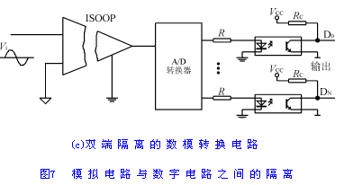 模擬電路與數(shù)字電路之間的隔離主要采用模/數(shù)轉(zhuǎn)換裝置;對(duì)于要求較高的電路,除采用模/數(shù)轉(zhuǎn)換裝置外,還應(yīng)在模/數(shù)轉(zhuǎn)換裝置的兩端分別加入模擬隔離元器件和數(shù)字隔離元器件。
