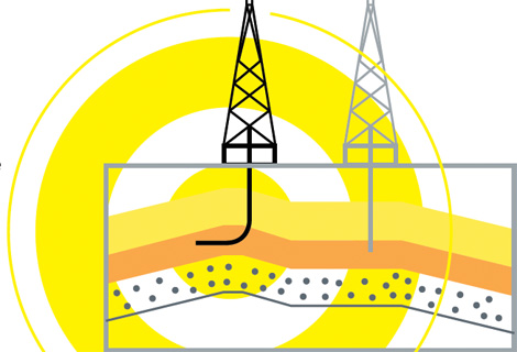 在深達大約3000多米的巖層之下,蘊藏著數(shù)萬億立方英尺的天然氣,但普通的鉆井根本無法鉆取。解決辦法是沿著巖層進行水平鉆探,即首先鉆出垂直鉆井,到 達天然氣層后再90度大轉(zhuǎn)彎實施水平鉆探。目前這只是個技術(shù)的概念。但美國第三大天然氣生產(chǎn)商切薩皮克能源公司計劃到2010年底將水平鉆井?dāng)?shù)量提高到 40個。