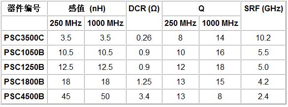 螺旋電感具有1nH~100nH的寬感值范圍,采用0.045英寸x0.045英寸x0.010英寸的小尺寸外形。PSC器件同時(shí)具有低寄生電容、低至0.26Ω的DCR、高達(dá)10.2GHz的SRF,在250MHz和1000MHz下的Q值分別為13和18。