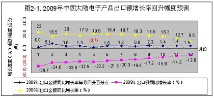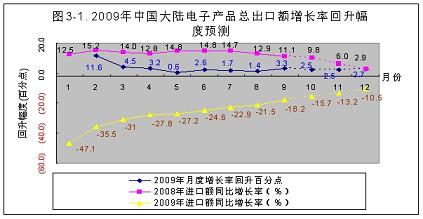 2008年下半年,國際金融風(fēng)暴席卷全球,以出口為主導(dǎo)的中國大陸電子信息產(chǎn)業(yè)直接受到?jīng)_擊,產(chǎn)品進(jìn)出口受阻,導(dǎo)致產(chǎn)品產(chǎn)量不斷下降,到今年元月份下降到谷底。由于中國政府及時(shí)實(shí)行積極的財(cái)政政策,調(diào)整產(chǎn)品結(jié)構(gòu),努力擴(kuò)大內(nèi)需,電子信息產(chǎn)業(yè)從2月份開始逐漸回升。雖然在個(gè)別月份有所波動(dòng),但回升趨勢穩(wěn)定向好。預(yù)計(jì)2009年全行業(yè)能實(shí)現(xiàn)5%左右的增長;進(jìn)出口額雖然有較大幅度的回升,但仍將呈現(xiàn)負(fù)增長;由于政府積極擴(kuò)大內(nèi)需,國內(nèi)市場將繼續(xù)保持10%左右的較快增長。