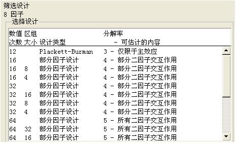 在篩選試驗時不強(qiáng)調(diào)因素間的交互作用等影響,但給出了主要的影響因素,這時主要因素的數(shù)量不會太多,可以進(jìn)一步度量因素的主效應(yīng)和交互作用。