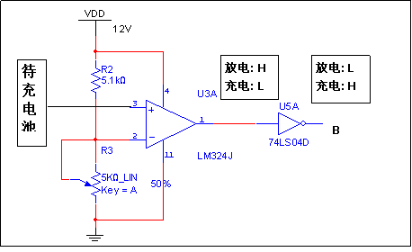 ①運(yùn)用電壓比較器監(jiān)測電池電壓,保證至充電終止電壓時(shí),能及時(shí)關(guān)斷充電電流并鎖定“充電結(jié)束”狀態(tài)。