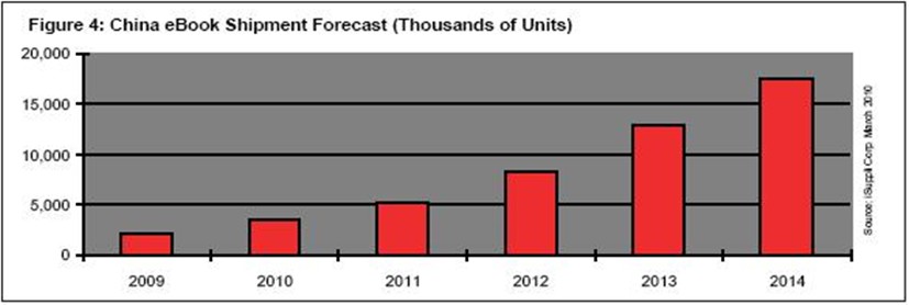 圖4所示為iSuppli公司對2009-2014年中國電子書市場的預(yù)測。