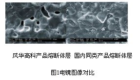 從電鏡圖像對(duì)比可見,風(fēng)華高科產(chǎn)品熔斷體層致密性較好,保險(xiǎn)絲有較好的熔斷特性。電子元器件行業(yè)正在朝著高頻化、片式化、微型化、薄型化、低功耗、響應(yīng)速率快、高分辨率、高功率、多功能、模塊化和智能化等方向發(fā)展,正進(jìn)入以新型電子元器件為主體的新一代元器件時(shí)代。產(chǎn)品的安全性和綠色化也將成為影響電子元器件發(fā)展前途的重要因素。