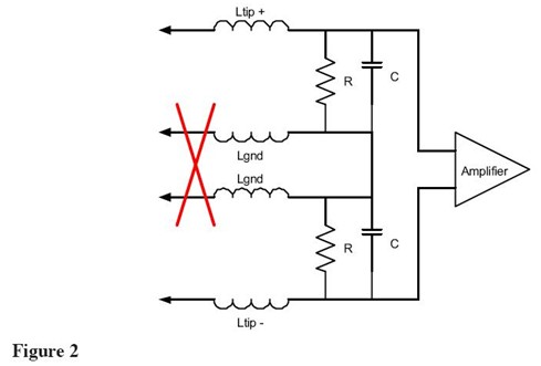 差分探頭包括兩個獨(dú)立的輸入端子和一個差分放大器,如Figure 2所示。因?yàn)橛性措娐分环糯髢蓚€輸入,公共地連接還有相關(guān)的電感被去除。剩下的電感是兩個尖端電感的和,但是由于Ltip通常遠(yuǎn)小于Lgnd,負(fù)載電感變得很小。尖端電感也是固定的,不依賴于任何因不同用戶而改變的地夾。此外,電容減半,因?yàn)樨?fù)載電容和原有的輸入電容串聯(lián)。