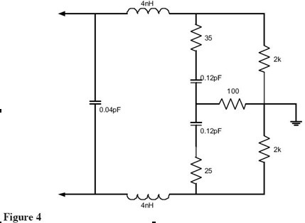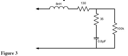 查看Figure 1中的等效電路,可以看到諧振頻率(1/(2*PI*sqrt(LC))給出)點(diǎn)的探頭輸入阻抗是0歐姆——完全消除了被測信號!最近一些制造商開始注意這個問題并設(shè)計(jì)具有更好輸入特性的探頭。Figure 3展示了這種探頭(Probe A)的等效電路。這是許多給出這個探頭精確依賴于尖端和地夾的等效負(fù)載模型之一。這個探頭還有一個諧振點(diǎn)大概是2GHz,該頻點(diǎn)的阻抗被電阻限制到大約165歐姆。
