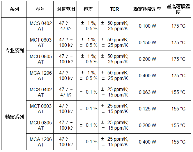 精密系列具有低至±15ppm/K的TCR和±0.1%的容差,兩個(gè)系列電阻的阻值范圍擴(kuò)展至47Ω。