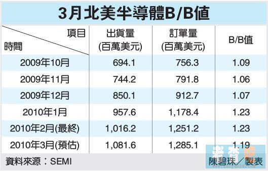 出貨部分,3月的三個(gè)月平均出貨金額也提高到10.8億美元,較2月最終的10.2億美元成長6.4%,也比去年同期的4.383億美元成長146.8%,創(chuàng)下20個(gè)月以來新高紀(jì)錄。