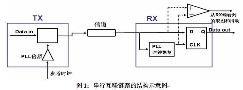 從整個鏈路的組成來看,發(fā)送器參考時鐘的抖動在串并轉(zhuǎn)換時就引入到整個鏈路中,影響著TX端發(fā)送出的數(shù)據(jù)的抖動,而接收器要從這些數(shù)據(jù)中恢復(fù)出時鐘來進(jìn)行后續(xù)的處理??梢钥闯霭l(fā)送器參考時鐘的性能對整個鏈路的性能起到很關(guān)鍵的作用。本文從時鐘抖動的相關(guān)概念、測試實例、測試注意事項、測試難點幾方面對時鐘抖動測試進(jìn)行分析和探討。
