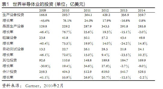 近期半導體業(yè)的迅猛增長,推動了半導體生產設備市場的快速復蘇,存儲器、代工業(yè)的發(fā)展以及進一步走向微細化先進技術的要求,則是主要的拉動力量。在各項生產設備中晶圓生產線(wafer fab)設備最為重要,增長也最快,2010年將竄升76.7%,達229億美元,獨占半導體生產設備的78%,整個半導體業(yè)投資的近57%。組裝設備增長75.5%,達41.8億美元,自動測試設備增長72%,達22.7億美元。其他有關投資增長19.4%,達110.6億美元,整個半導體業(yè)投資共增長55.9%,達到404.3億美元(表l)。