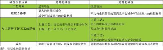 最后,如果硅錠生長和線切割操作之間的生產(chǎn)線平衡無法維持,總體硅片生產(chǎn)力也會(huì)下降。生產(chǎn)更多可制成硅片的硅錠材料可能會(huì)增加生產(chǎn)能力和爐子的利用率,但如果線切割操作無法處理增加后的材料或波形因數(shù),就可能會(huì)出現(xiàn)在制品(WIP)瓶頸或降低線鋸利用率,從而導(dǎo)致硅片生產(chǎn)運(yùn)營的總體生產(chǎn)力下降。影響硅錠生長的因素分析見表1。