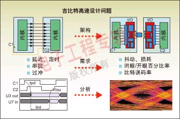 圖2:并行總線和串并轉(zhuǎn)換設(shè)計(jì)所遇到的典型設(shè)計(jì)問題。