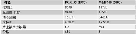 在過(guò)去的15年里,ADC和DAC系統(tǒng)的性能一直在穩(wěn)定地增長(zhǎng)。下面的音頻DAC表簡(jiǎn)要列出了今天最先進(jìn)的DAC和1986年最先進(jìn)的DAC之間的性能比較。現(xiàn)在,將廣泛的數(shù)字濾波技術(shù)集成進(jìn)今天的DAC轉(zhuǎn)換器中不僅在技術(shù)上是可行的,而且也非常經(jīng)濟(jì)。如WolfsonMicroelectronics公司的DAC器件WM8740具有完全支持最新DVD-Audio標(biāo)準(zhǔn)、CD和其它使用PCM格式數(shù)據(jù)的數(shù)字音頻系統(tǒng)的架構(gòu)。