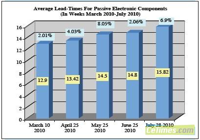 在第二季度,交貨時(shí)間被拉長,我們還密切關(guān)注了原材料的價(jià)格。7月份出現(xiàn)了一次無征兆的跳躍,交貨時(shí)間在過去30天里再一次延長了6.9%,其中鉭電容器的交貨時(shí)間增加最為明顯,而MLCC的交付時(shí)間則縮短了,因?yàn)轫n國和日本差不多在同一時(shí)間開始供貨(圖1.1)