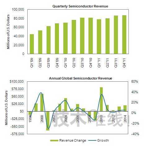 iSuppli從正面否定了對(duì)于此次快速增長所擔(dān)心的“泡沫”和“二次探底”。關(guān)于泡沫問題,有觀點(diǎn)認(rèn)為,此前曾創(chuàng)下歷史最高增長率的2000年出現(xiàn)了需求泡沫,所以此次的增長會(huì)不會(huì)也是泡沫。但是,iSuppli指出,2000年的增長是繼1999年經(jīng)濟(jì)繁榮之后的產(chǎn)物,而此次增長的背景卻是經(jīng)濟(jì)形勢從2009年以前的經(jīng)濟(jì)低迷期開始的復(fù)蘇,因此這兩種情況“在循環(huán)本質(zhì)上完全不同”。關(guān)于二次探底,iSuppli高級(jí)副總裁戴利·福特(Dale Ford)表示,“我不同意二次探底將要到來的觀點(diǎn)”。他認(rèn)為,從2010年下半年開始,2010年半導(dǎo)體市場將恢復(fù)到通常模式。也就是說,2010年第二季度將環(huán)比增加8.2%,達(dá)到峰值,第三季度將環(huán)比增加6.7%、第四季度將環(huán)比增加0.4%,出現(xiàn)減速,進(jìn)入2011年后,由于通常的季節(jié)因素,將轉(zhuǎn)為環(huán)比負(fù)增長。iSuppli預(yù)測,回到這種標(biāo)準(zhǔn)增長模式后,2011年的半導(dǎo)體市場將增長7%。