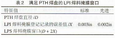 LDI對焊料掩膜窗口的潛在影響在表2中所示。制造廠商所能實現(xiàn)的最小液體可成像(LiquidPhotoima8eable,簡稱LPI)焊料掩膜允許誤差(x)是因為多層層壓板的影響導致材料移動,由于鍍覆和烘干的影響導致材料尺寸的變動以及由于環(huán)境的變化導致在成像l工藝過程中變化的共同作用而產(chǎn)生的。對于焊料掩膜成像的后期是綜合的,因為常規(guī)的焊料掩膜成像要花費較長的時間(20s~40s),