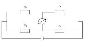 通常的測量方法基于不等臂電橋測量法,按加負(fù)載的方不同又有直流加載法和交流加載法兩種。這里只僅介紹不等臂單橋說明通常的測量方法的不足。