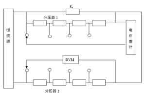 在直流精密測量中,由名義值相同、結(jié)構(gòu)尺寸相同和材料相同的N個電阻所組成的分壓器能準(zhǔn)確地提供k/n的比例,其中k值在(1~n)之間選取。這種分壓器的特點是不但誤差可以自校,而且其誤差受環(huán)境變化的影響小,這是因為它們的電阻溫度系數(shù)、負(fù)載系數(shù)基本都一致的緣故。