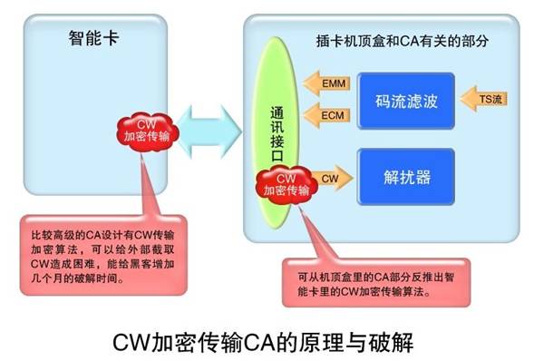 圖三中是CW加密傳輸?shù)腃A原理與破解,有的CA在CW傳輸構(gòu)成中進(jìn)行了加密,但這種加密幾乎沒(méi)有對(duì)黑客形成阻礙。
