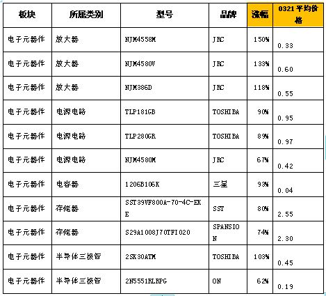 從我們采集到的數(shù)據(jù)來(lái)看,閃存開(kāi)始呈現(xiàn)明顯上漲趨勢(shì)。3月15日,東芝閃存報(bào)價(jià)已經(jīng)上漲50%,而三星、現(xiàn)代也提價(jià)6%-26%;從通用元器件來(lái)說(shuō),日系的產(chǎn)品已經(jīng)全線上揚(yáng),而且是全面缺貨。下表為3月21日的電子元器件漲幅排行表,可以看出,漲幅最大的幾乎都是受災(zāi)企業(yè)的產(chǎn)品。