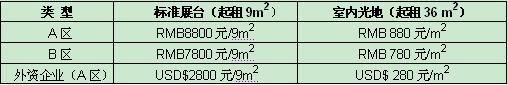 1)展位價格(申請截止日- 2012年4月10日 )注:雙面開口展位加收10%,18平米免收開口費?。?br />