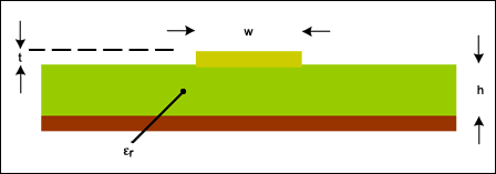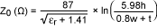 式中,εr為電介質(zhì)的介電常數(shù),h為引線距離地層的高度,w為引線寬度,t為引線厚度(圖7)。w/h介于0.1至2.0、εr介于1至15之間時,該公式的計算結(jié)果相當準確。