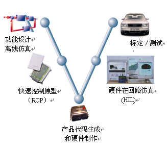 汽車(chē)電子產(chǎn)品軟件開(kāi)發(fā)流程是“V”形開(kāi)發(fā)流程。“V”形開(kāi)發(fā)流程分為五個(gè)階段,即功能設(shè)計(jì)、原型仿真、代碼生成、硬件在回路仿真-HIL、標(biāo)定。