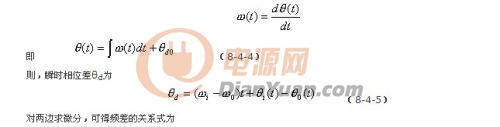 式中的ωi為輸入信號(hào)的瞬時(shí)振蕩角頻率,θi(t)和θO(t)分別為輸入信號(hào)和輸出信號(hào)的瞬時(shí)位相,根據(jù)相量的關(guān)系可得瞬時(shí)頻率和瞬時(shí)位相的關(guān)系為: