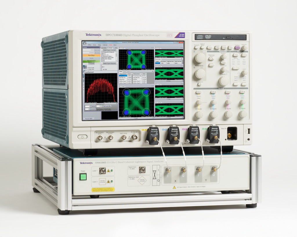 傳統(tǒng)上,光調(diào)制分析儀可與許多種示波器機(jī)型搭配使用。OM4106D是第一個與高速示波器緊密整合的光調(diào)制分析儀,這讓它的性能可以測試市場上速度最快的相干光波系統(tǒng)。DPO73304D示波器提供33GHz實(shí)時帶寬,雙通道采樣率為100 GS/s,四通道采樣率為50 GS/s。該示波器還有一個新 DataStore 公共接口,為分析任務(wù)提供2倍的從數(shù)字轉(zhuǎn)換器到實(shí)現(xiàn)OM4106D算法的 MATLAB 應(yīng)用的數(shù)據(jù)吞吐率。