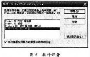 在Visual Studio 2003中進(jìn)行軟件設(shè)計(jì),并在模擬器中調(diào)試成功之后,就可以將軟件下載到實(shí)驗(yàn)平臺(tái)中運(yùn)行,在軟件進(jìn)行部署前安裝ActiveSync 4.1,并在軟件進(jìn)行部署時(shí)選中“Windows CE.NET、設(shè)備”見圖6。