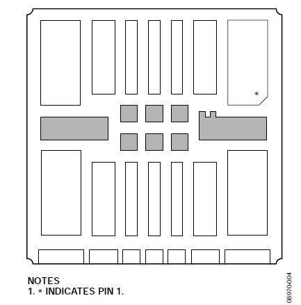 關(guān)于垂直和水平安裝方向的CVMP焊盤布局(焊盤圖形),請(qǐng)參閱本應(yīng)用筆記的"焊盤布局"部分。CVMP背面的焊盤布局如圖7所示。注意,封裝正面上有一些額外的焊盤(見圖4)沒有顯示在焊盤布局中,這些焊盤用作測(cè)試點(diǎn),不應(yīng)進(jìn)行電氣連接。