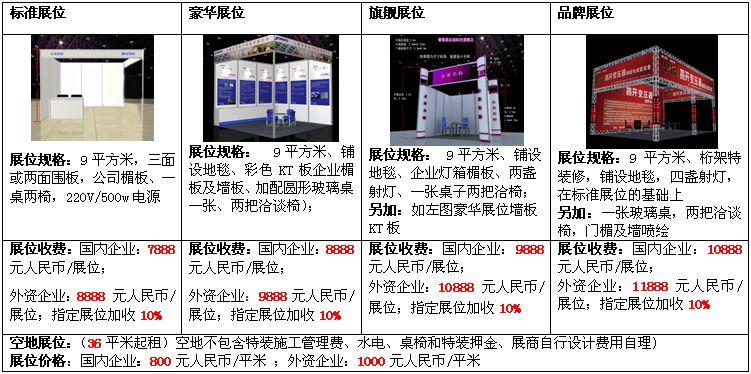 1、各種展位價格表