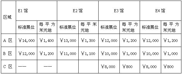 (A) 標(biāo)準(zhǔn)展位(每個標(biāo)準(zhǔn)展位為3米×3米=9平方米) 標(biāo)準(zhǔn)展位設(shè)施配備為:三面鋁合金圍板、滿鋪地毯、兩只射燈、兩把折椅,一張問詢桌和一個220V/500W的電源插座,楣板上書中英文公司名稱。單個拐角位置展位費增加10%