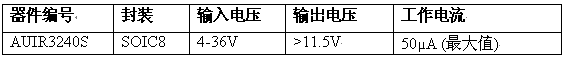 AUIR3240S 符合 AEC-Q100 標(biāo)準(zhǔn)要求,采用的物料清單環(huán)保、不含鉛,也符合電子產(chǎn)品有害物質(zhì)管制規(guī)定 (RoHS) ,并遵循 IR 要求零缺陷的汽車質(zhì)量理念。