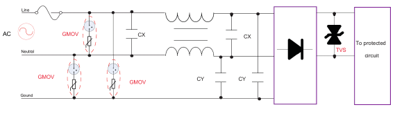 • 由于放電管的脈沖擊穿電壓高,一般在選型設(shè)計的時候要做二極保護是比較安全可靠的。