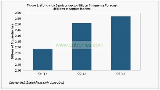 據(jù)IHS iSuppli公司的半導(dǎo)體制造與供應(yīng)市場追蹤報告,由于半導(dǎo)體產(chǎn)業(yè)對過剩的渠道庫存恢復(fù)控制,以及假日季節(jié)來臨前廠商增加庫存,第三季度半導(dǎo)體硅出貨量有望繼續(xù)增長,保持第二季度的局面。