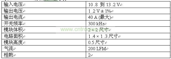 LM3754 高功率密度評估板通過一個12-V 輸入電源供電,提供電壓為12V,電流為40A。該評估板體積大小為2 × 2 英寸,組件占用面積為1.4 × 1.3 英寸。每個相的開關(guān)頻率設(shè)定為300kHz。表1 對上述及其他工作條件進行了概括。組件放置在一個4 層板上,層上銅為1 盎司。板上還有一些引腳,用于遠程檢測,另有一個引腳用于獲得輸出電壓余量。